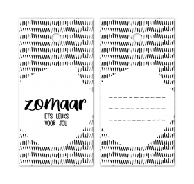 Een leuk cadeaukaartje met de algemene tekst Zomaar iets leuks voor jou op een grafische zwart witte print. Op de achterzijde is ruimte voor het schrijven van een persoonlijke boodschap.