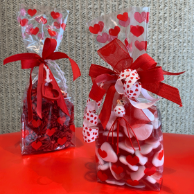 Dit leuke zakjes is bedrukt met allemaal kleine hartjes in het rood. Zo leuk om snoepjes of chocolade in te verpakken. Sluit het zakje met een leuk lintje of met een sluitstrip.