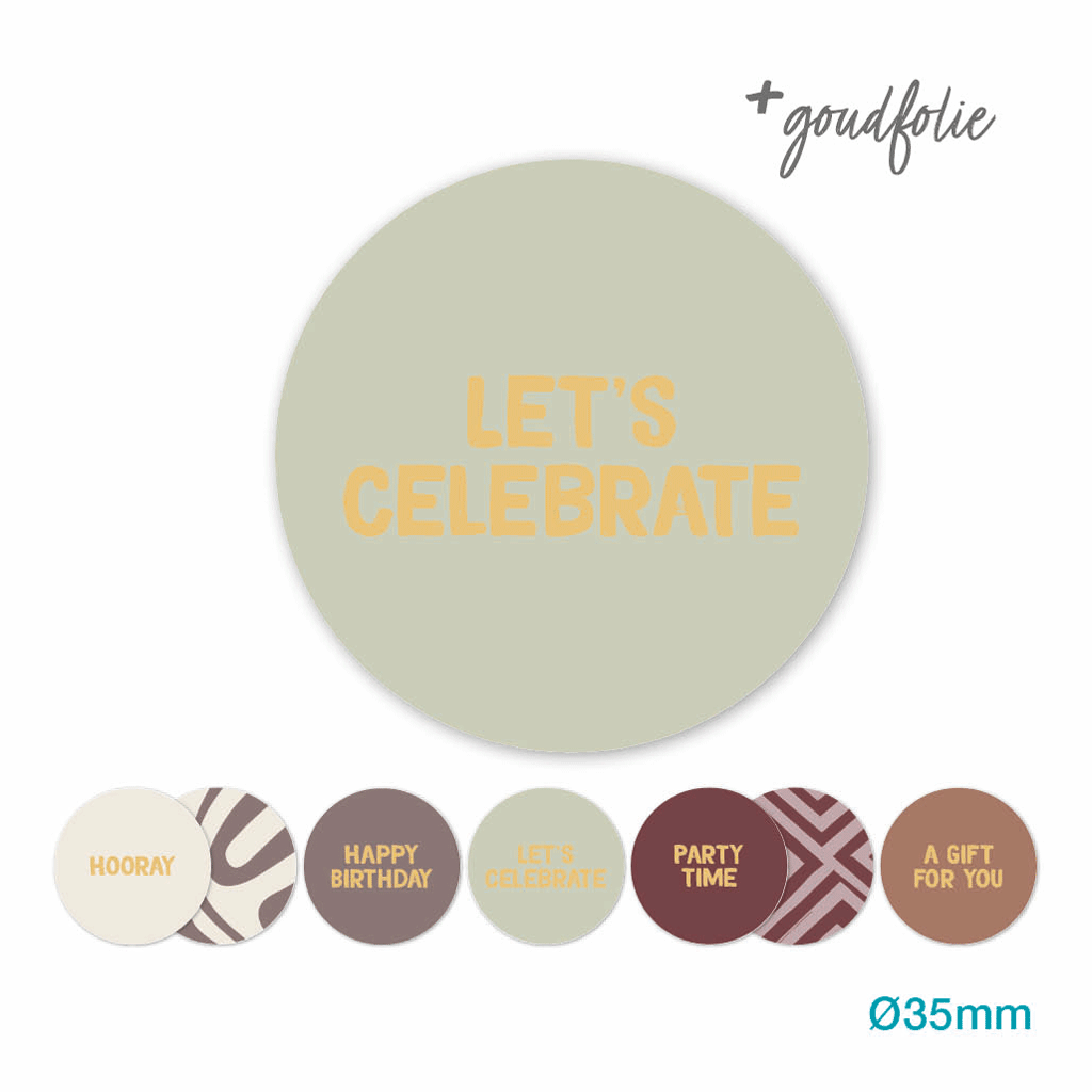 Verschillende etiketten op een rol met een extra goudfolie accent. Mooie warme kleuren die je met elkaar kunt combineren. 7 verschillende stickers van 35mm rond op een rol. Combineer deze sticker met een leuk lintje en hangkaartje en je hebt een super kado.