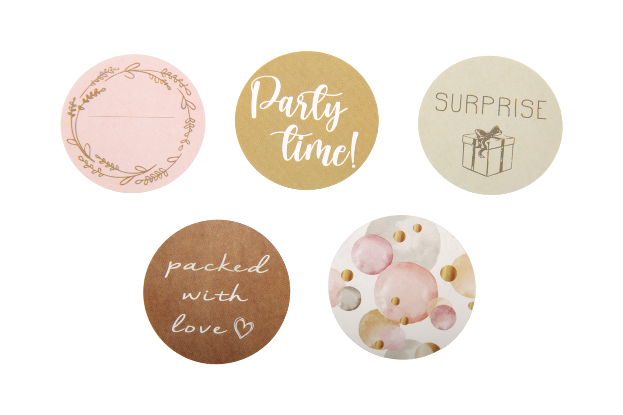 Deze leuke etiketten zijn full colour bedrukt in 5 verschillende dessins op 1 rol.