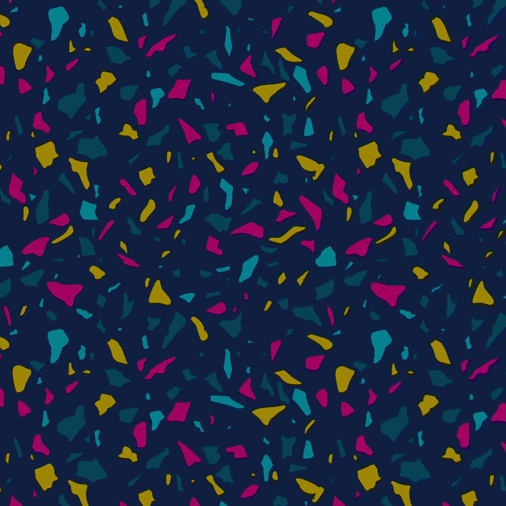Inpakpapier met confetti dessin op donkerblauwe achtergrond