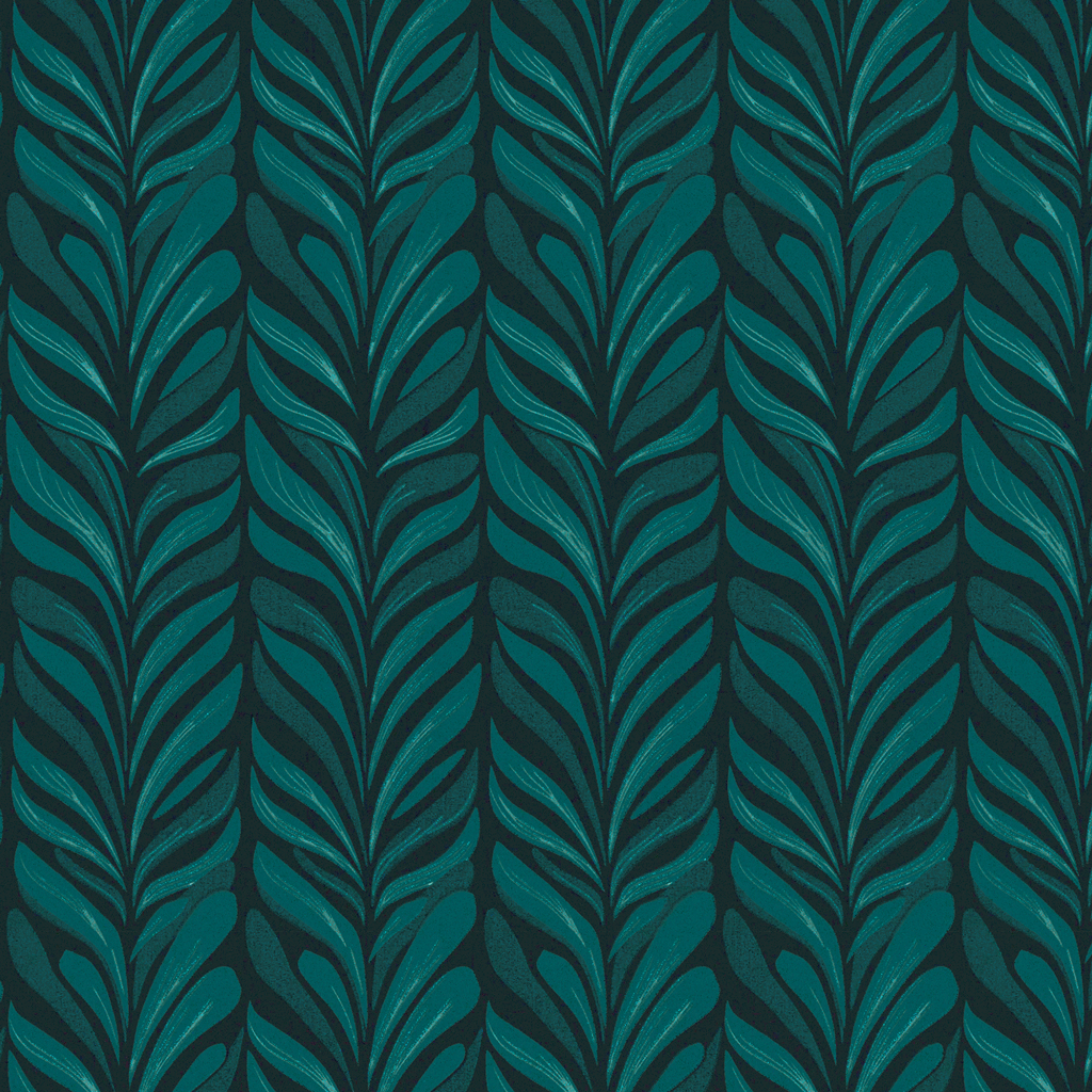 Dit inpakpapier heeft een herhalend bladmotief in groenblauwe tinten op een donkere achtergrond. Het patroon zorgt voor een rustige en verzorgde uitstraling en is goed inzetbaar voor verschillende soorten producten en cadeau