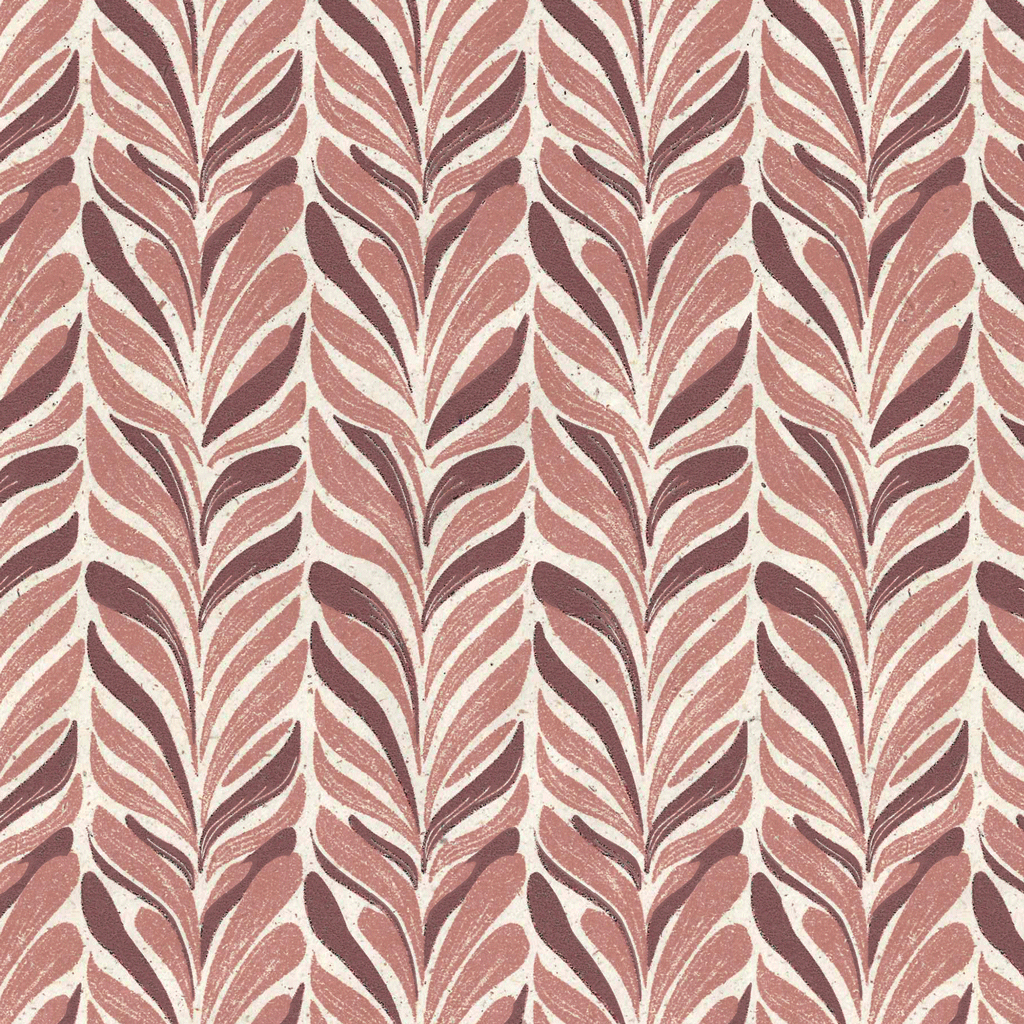Dit inpakpapier heeft een herhalend bladmotief in roze tinten op een lichte achtergrond. Het patroon zorgt voor een rustige en verzorgde uitstraling en is goed inzetbaar voor verschillende soorten producten en cadeau