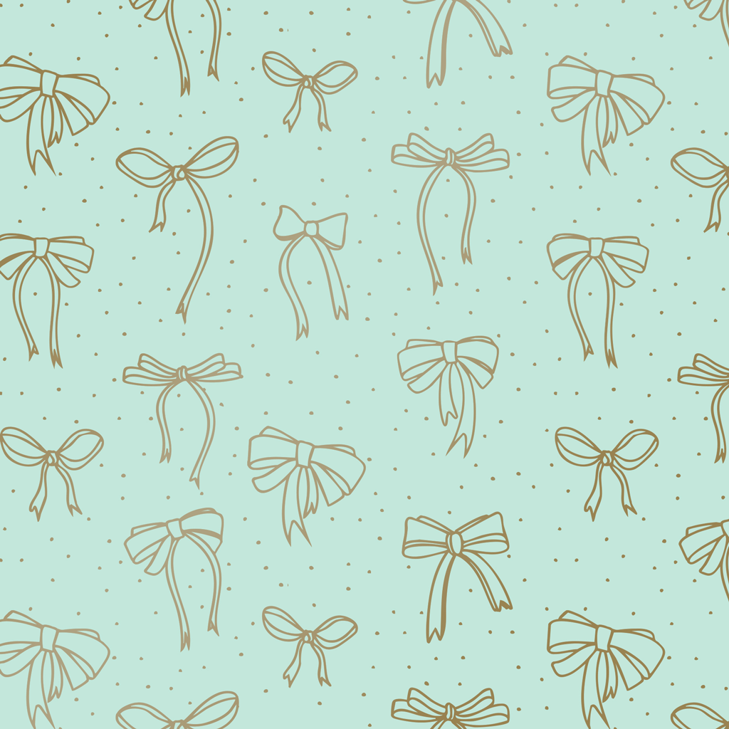 Stijlvol inpakpapier met goudkleurige strikken op mintgroene achtergrond