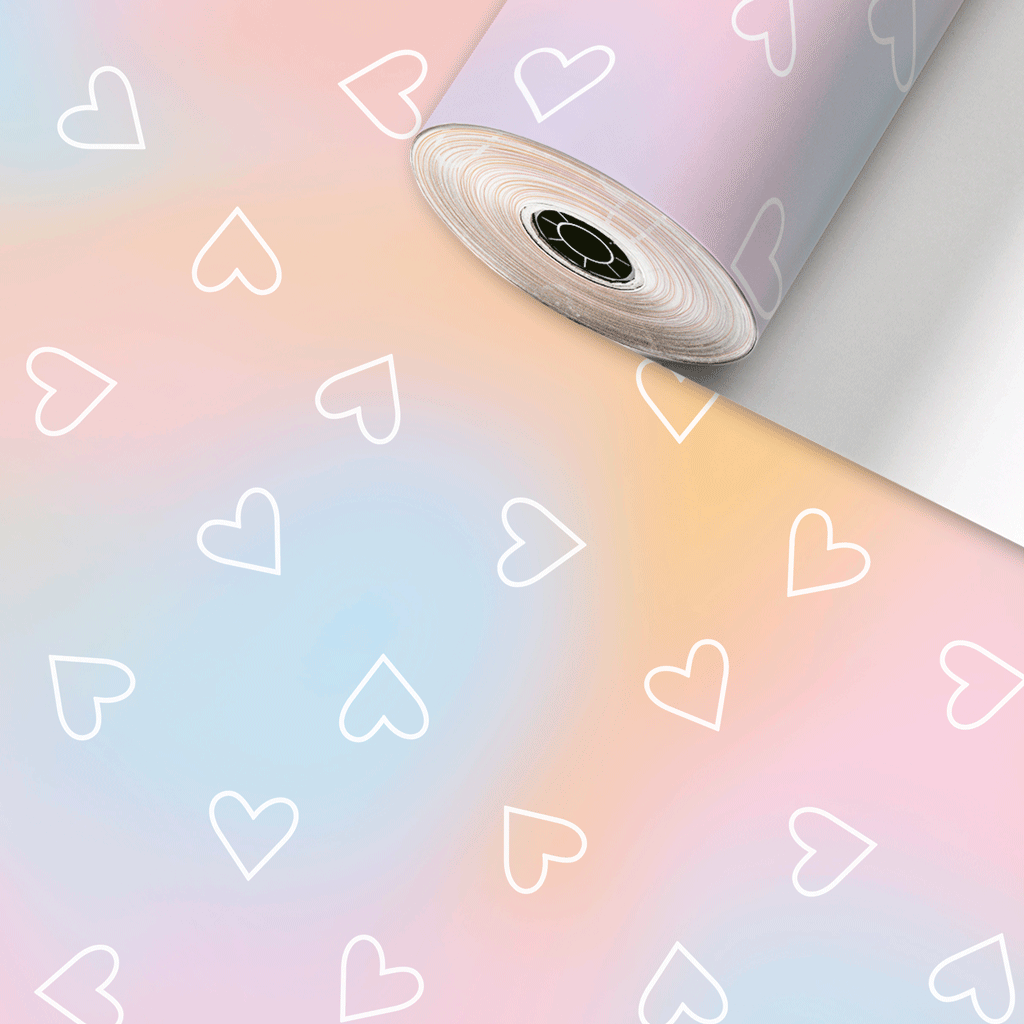 Schitterend, uniek en opvallend! Dit holografische cadeaupapier Kayla is een echte eyecatcher! Schitterend 76 grams holografisch inpakpapier waarin je alle kleuren van de regenboog kunt spotten. Dit papier is voorzien van een witte hartjesprint. Geschikt voor Valentijn, Moederdag, stijlvolle cadeaus, maar ook als kinderpapier!