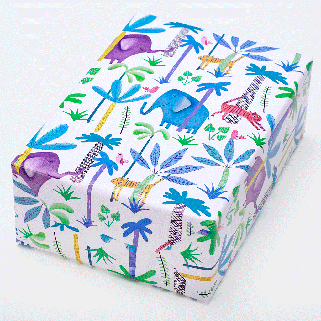 Superleuk inpakpapier voor kinderen met een schattige print van olifantjes in het bos. Mooie 90 grams papierkwaliteit zodat je fijn in kunt pakken. Goed te combineren met mooi krullint, een leuke sticker en klaar is je cadeau!