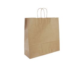 Deze papieren draagtassen, o.a. verkrijgbaar in het bruin kraft, zijn voorzien van een gedraaid papieren koord. Papieren draagtassen zijn sterk en hebben een luxe uitstraling. Deze tas is gemaakt van 110 grams papier.