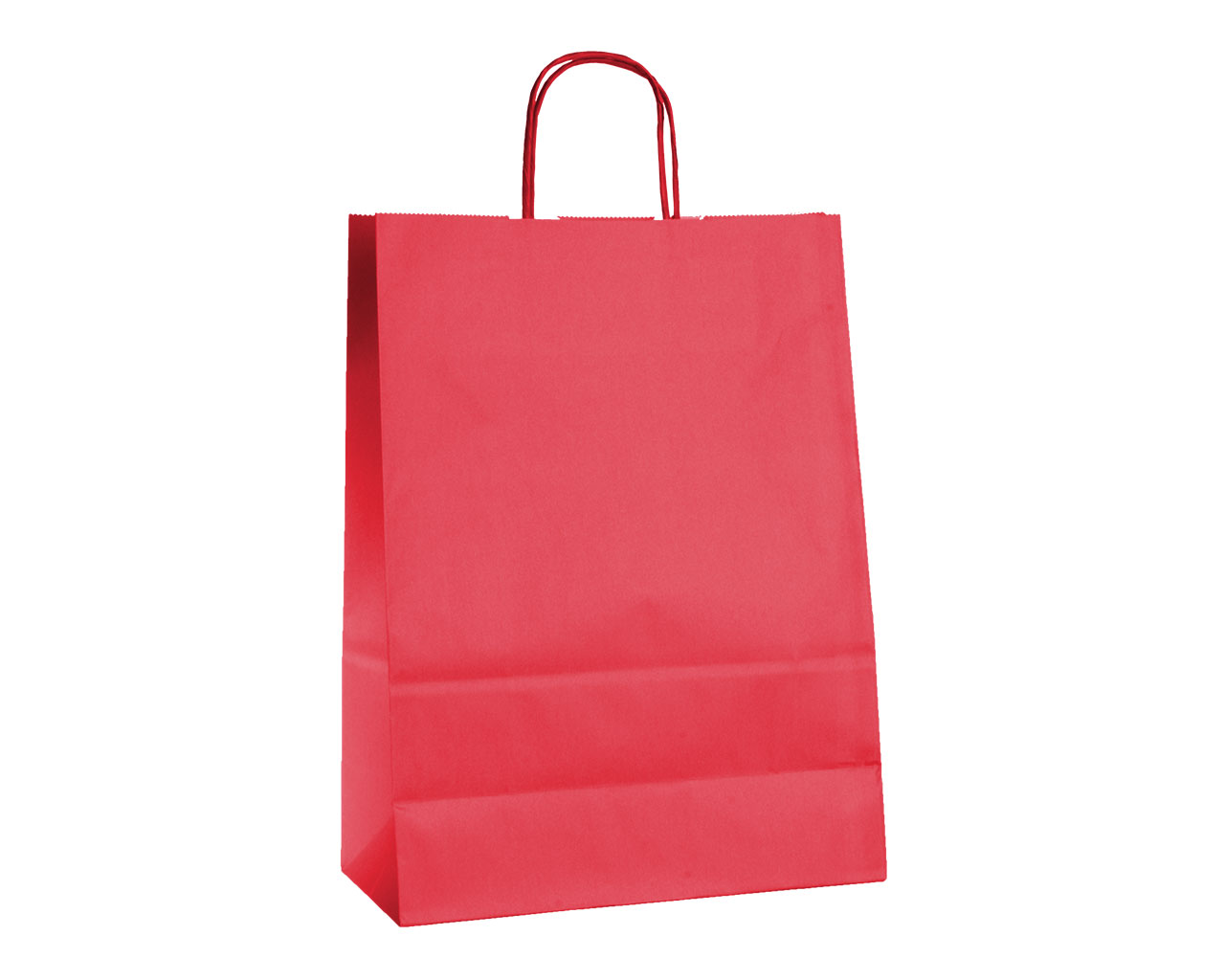Deze papieren draagtassen, o.a. verkrijgbaar in het rood, zijn voorzien van een gedraaid papieren koord en zijn gemaakt van wit ongestreept kraft papier. Papieren draagtassen zijn sterk en hebben een luxe uitstraling. Deze mooie draagtas is gemaakt van 90 grams papier.