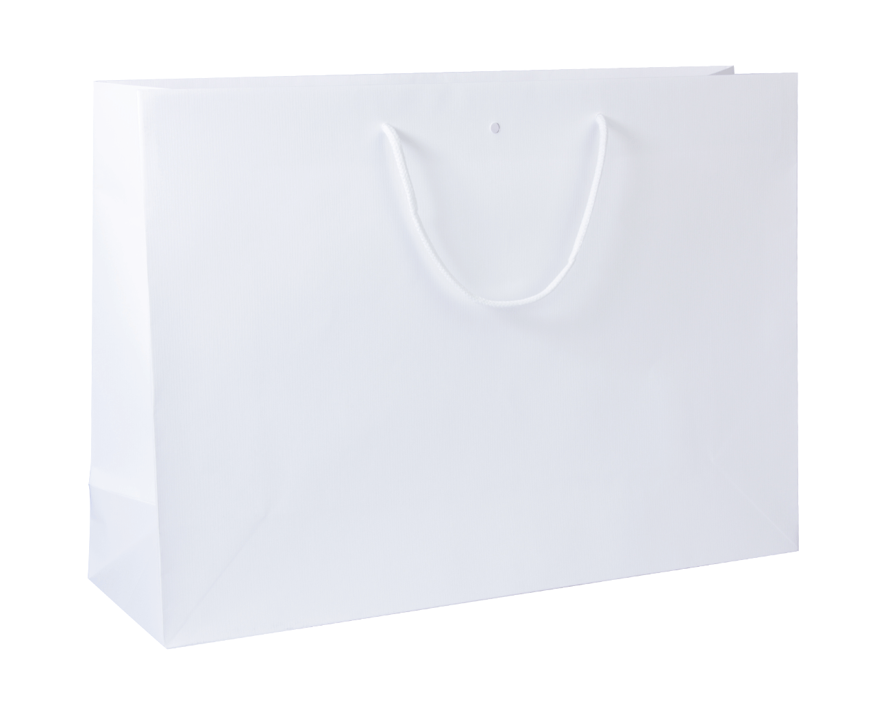 Deze luxe witte papieren draagtas met embossing is van 200 grams wit kraft en heeft een katoenen koord als handvat en is voorzien van 6cm topvouw en een lintsleuf van Ø8mm.