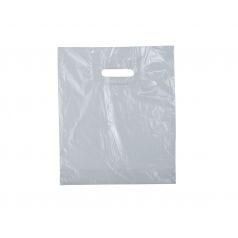 Plastic draagtas met verstevigd uitgestanst handvat. Perfect voor zwaardere artikelen zodat het handvat niet kan scheuren. De plastic tassen worden gemaakt van LDPE materiaal met een standaard dikte van 50 micron en uitgestanste verstevigde handvatten. Wij hebben plastic tassen met uitgestanst handvat in verschillende formaten, verschillende kleuren en met dessin op voorraad.