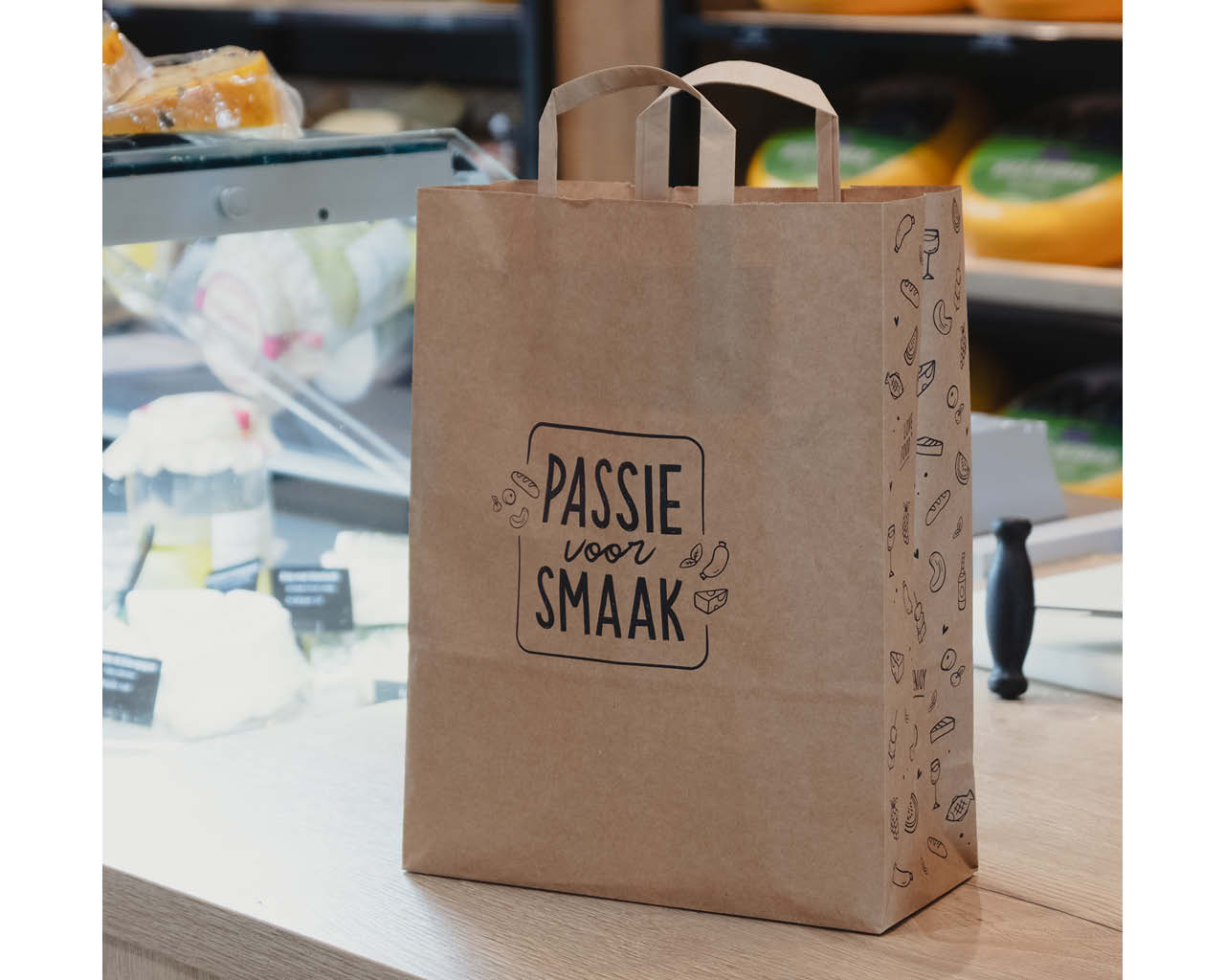 Papieren draagtassen 22x10x28cm – Passie voor Smaak – 250 stuks