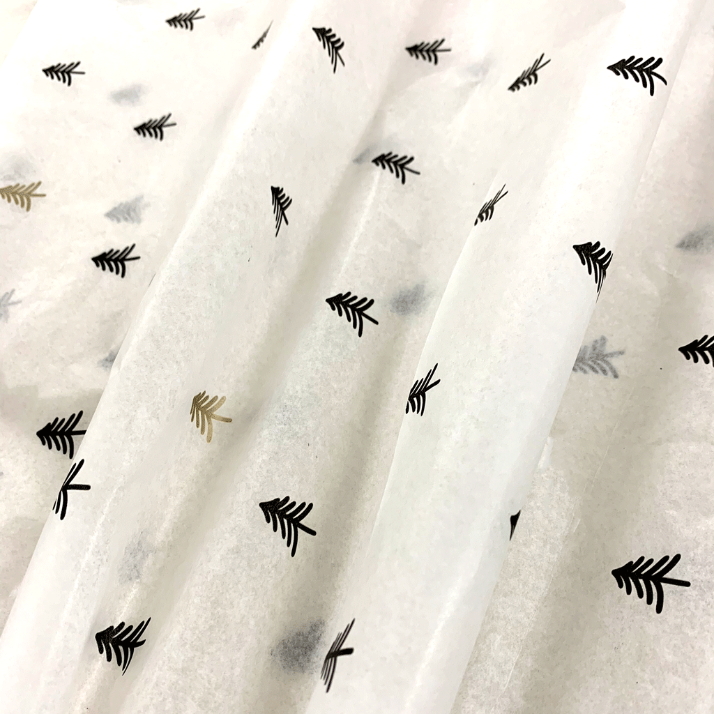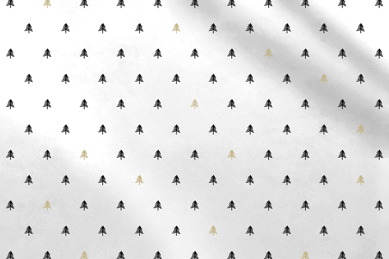 Eggink's eigen ontwerp! Dit prachtige 20 grams zijdevloei heeft een witte ondergrond en is voorzien van een zwarte en goudkleurige kerstboompjes.