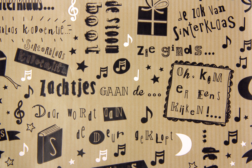 Mooie soepele kwaliteit sinterklaas papier met allemaal teksten van liedjes. Combineer dit papier met een leuke sticker en hangkaartje en je hebt een super leuk cadeau.